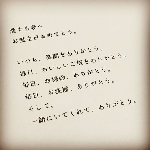 奥様への愛情表現がそつなくできる男性が多いのでびっくりしてます。面と向かっては、なかなか言えないですねぇ・・・。