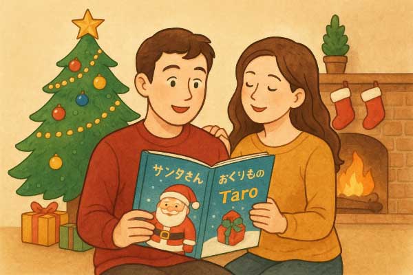 本日は、結婚して初めて迎えるクリスマスに、旦那様にクリスマス用の名入れ絵本をプレゼントした方(女性)からのお便りが届きました。