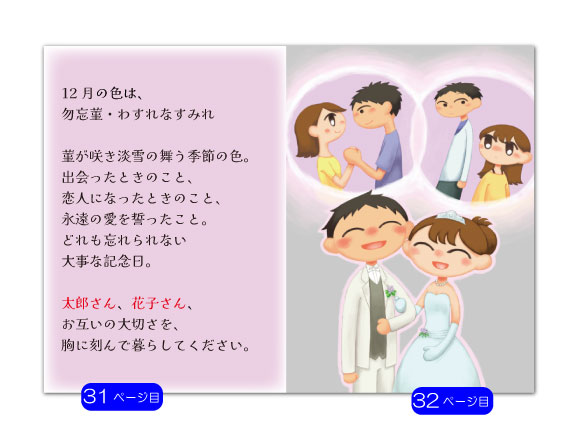 お二人が歩んできた時間を「色」で表現。読み返すたびに、当時の記憶が鮮やかに蘇ります。