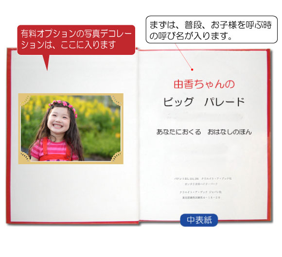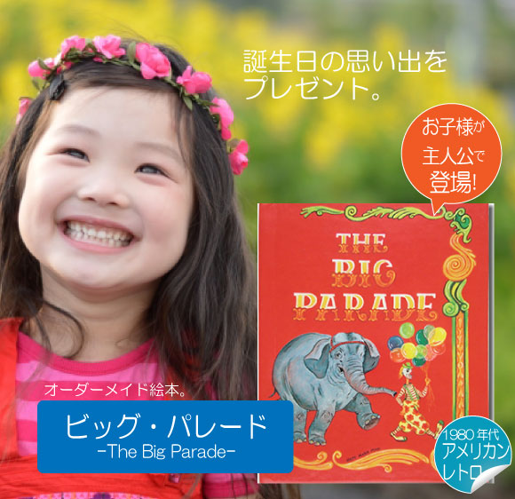 ○オリジナル絵本「ビッグパレード」は、あなたのお子さんが主人公で登場する世界に一冊だけの名入れ絵本。