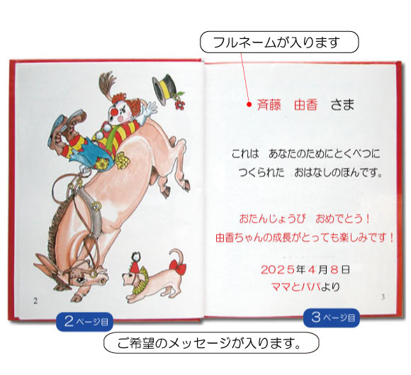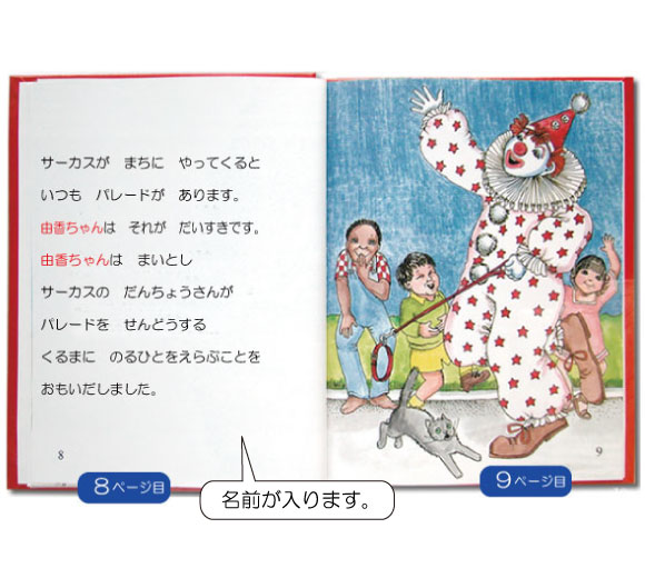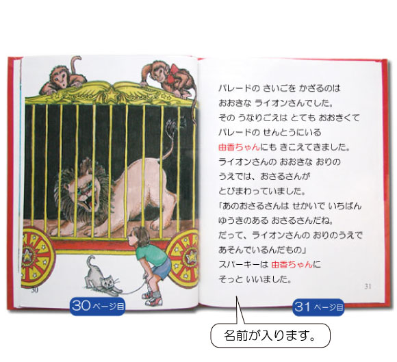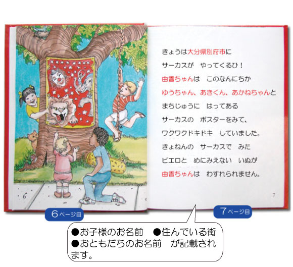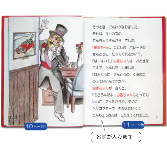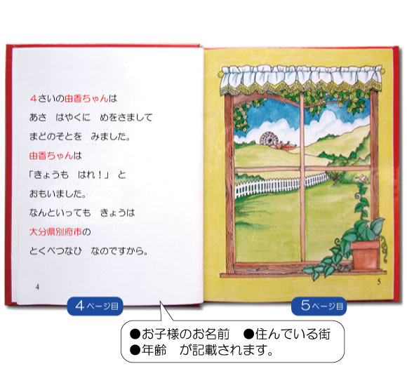 オーダーメイド絵本の中には、ほとんどのページに、お子様の名前が記載されます。