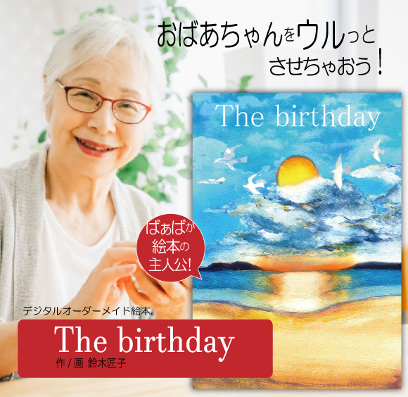 ■オリジナル絵本「The birthday」は、大好きなお祖母ちゃんを主人公で登場させることができる名入れ絵本。