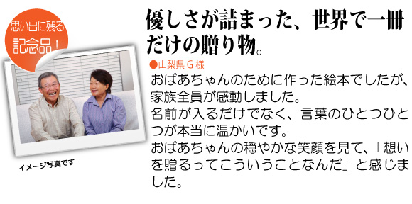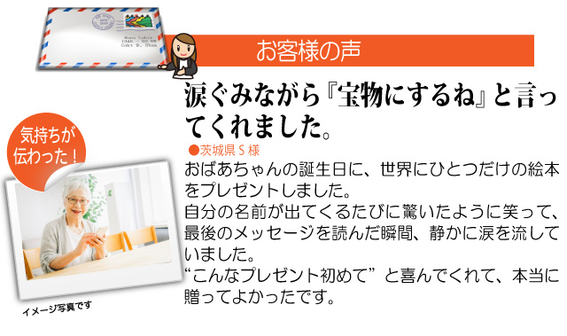 これまでに、たくさんの誕生日プレゼントの絵本を作ってきましたが、おばあちゃんがグッときてしまったメッセージをご紹介します。