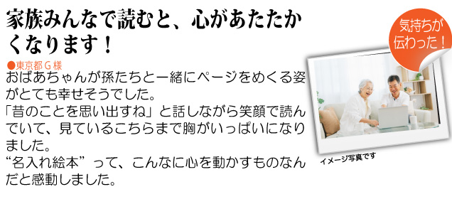おばあちゃんのために作った絵本でしたが、家族全員が感動しました。