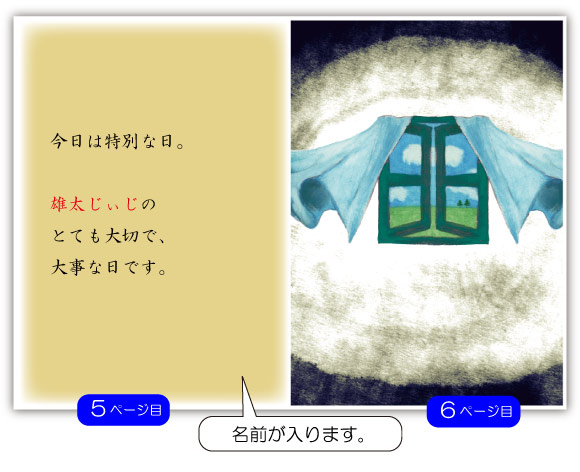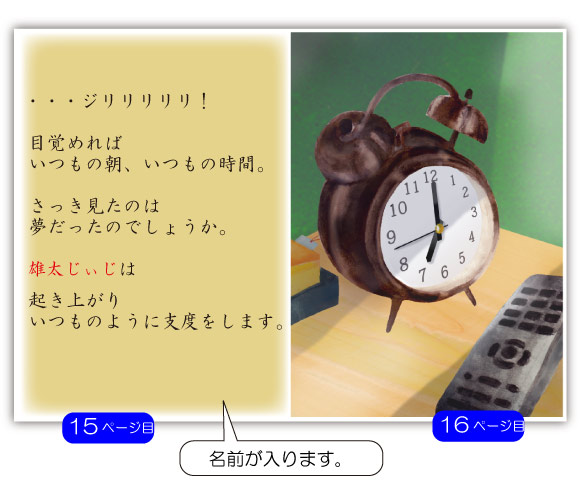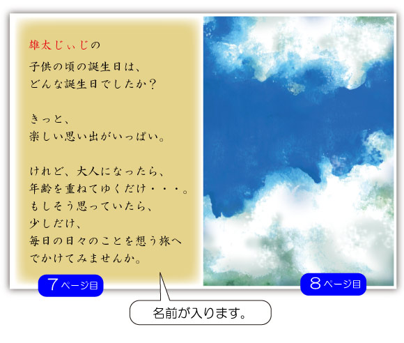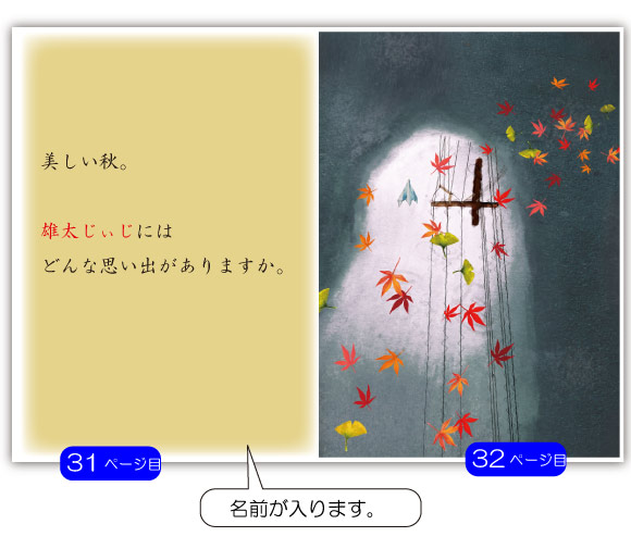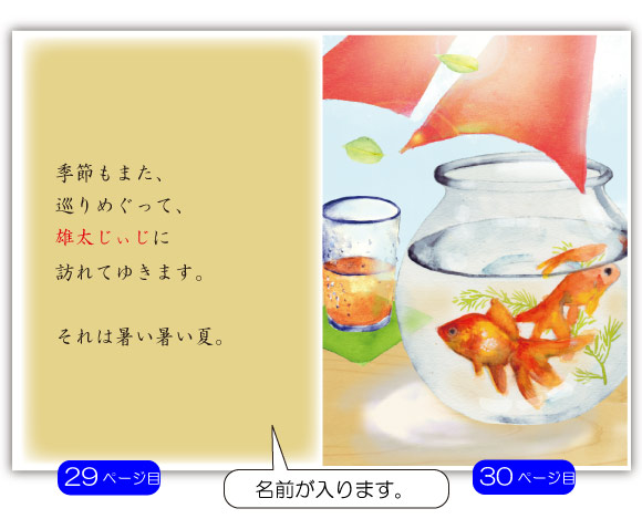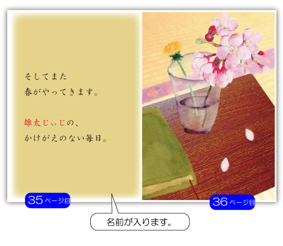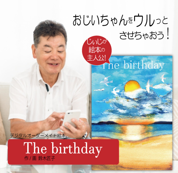 ■オリジナル絵本「The birthday」は、大好きなお爺ちゃんを主人公で登場させることができる名入れ絵本。