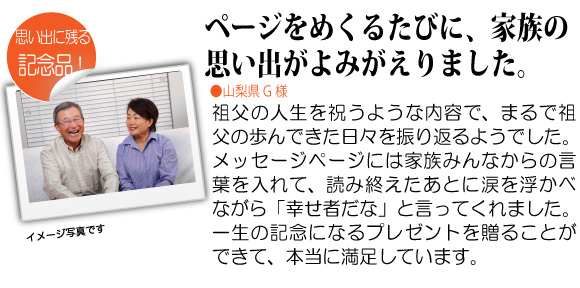 メッセージページには家族みんなからの言葉を入れて、読み終えたあとに涙を浮かべながら「幸せ者だな」と言ってくれました。