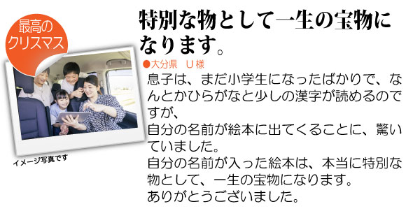 自分の名前が入った絵本は、本当に特別な物として、一生の宝物になります。