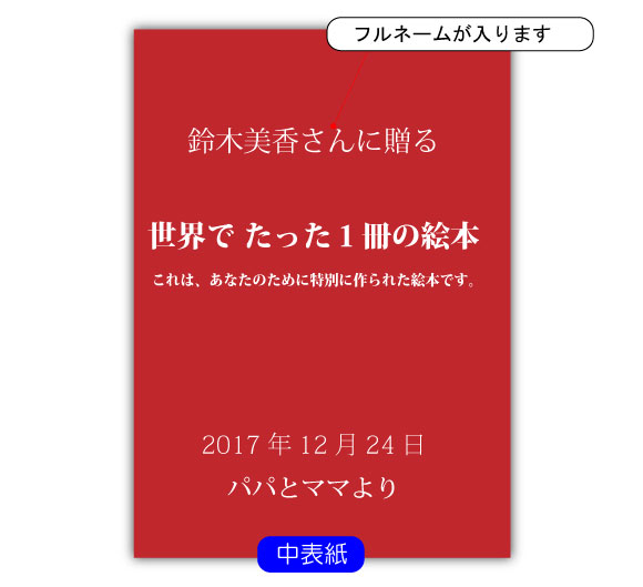 絵本の各ページには、子供の名前が記載されます。