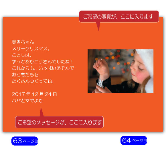 ■この絵本の最後のページには、一ページまるまる、あなたからのメッセージが記載できます。