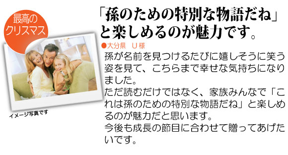 ただ読むだけではなく、家族みんなで「これは孫のための特別な物語だね」と楽しめるのが魅力だと思います。