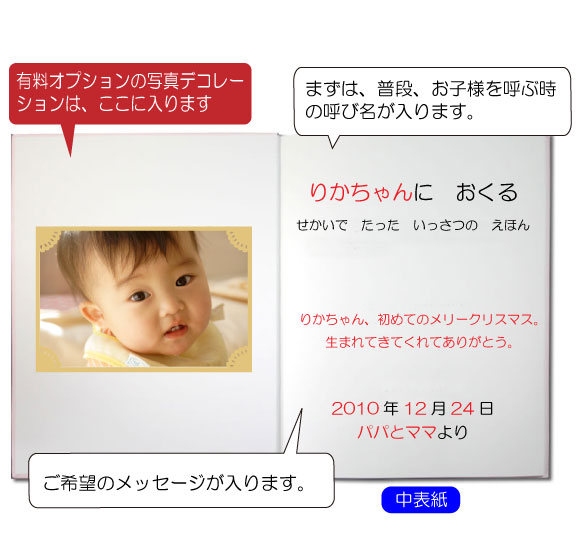 ■あなたからのメッセージを記載して、初めてのクリスマスの思い出を残すこと、できます!