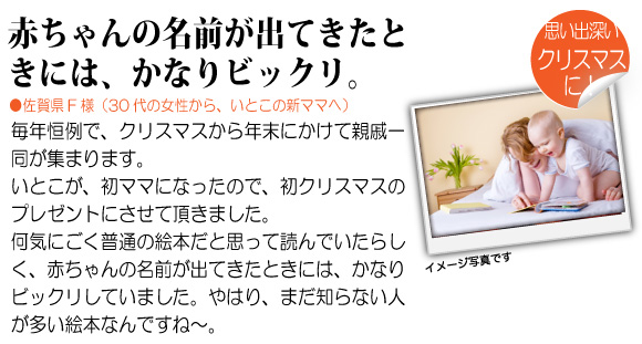 何気にごく普通の絵本だと思って読んでいたらしく、赤ちゃんの名前が出てきたときには、かなりビックリしていました。