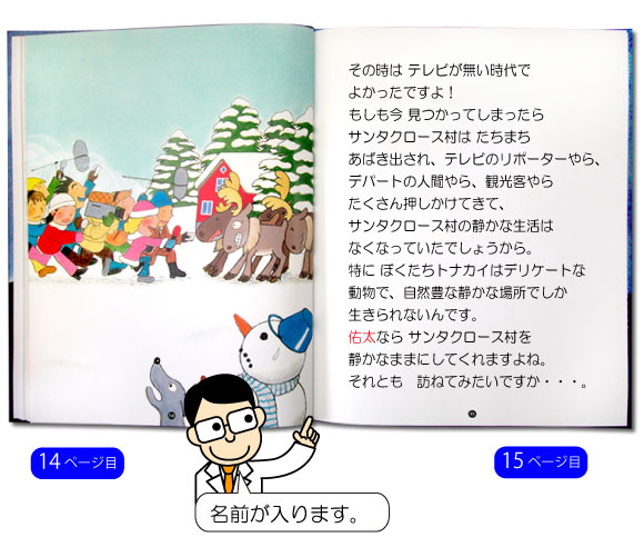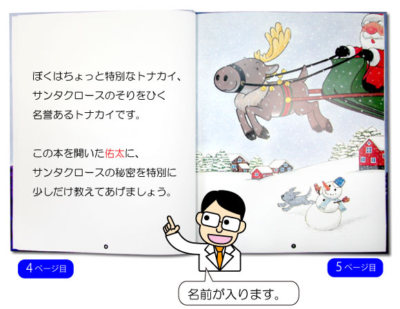 ■絵本に登場するあなたのご主人(もちろん実名で!)に向かって、トナカイが語りかけます。